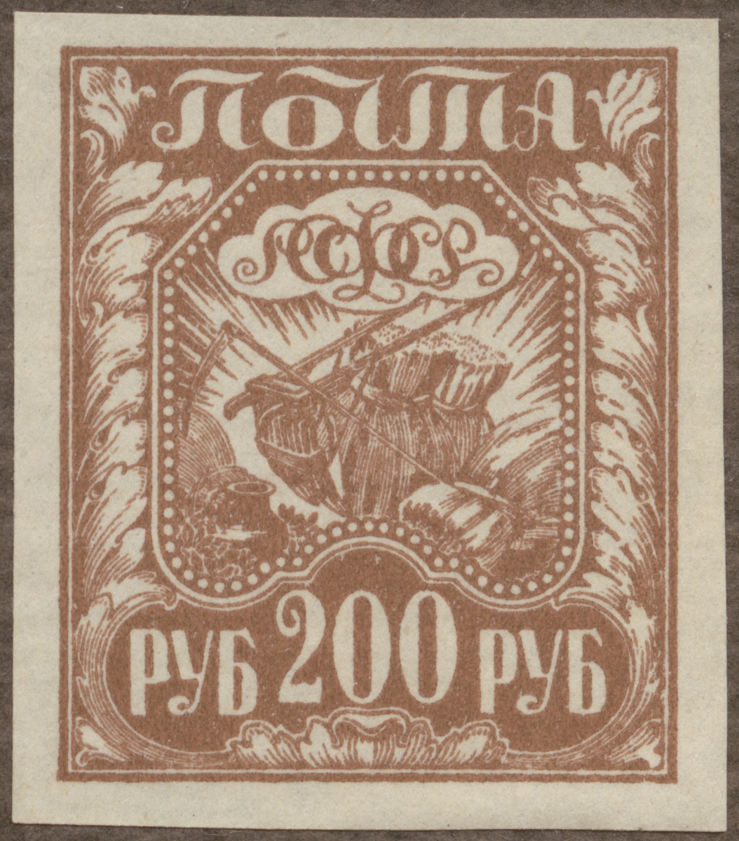 Frimärke från Ryssland, 1921. Motiv av Symboler för ryskt lantbruk.