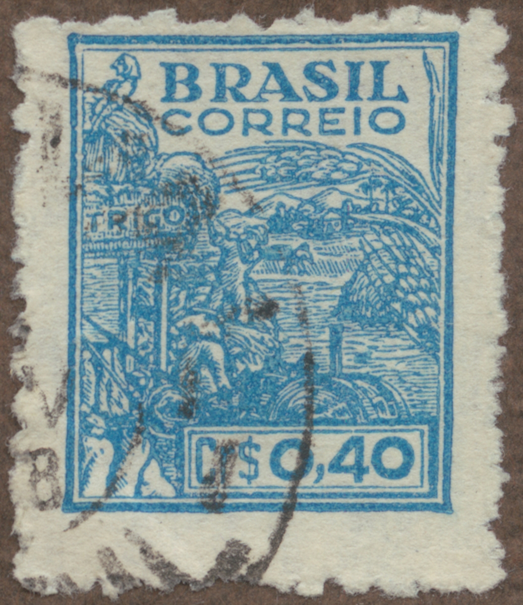 Frimärke från Brasilien, 1941. Motiv av Skördemän Sädesax