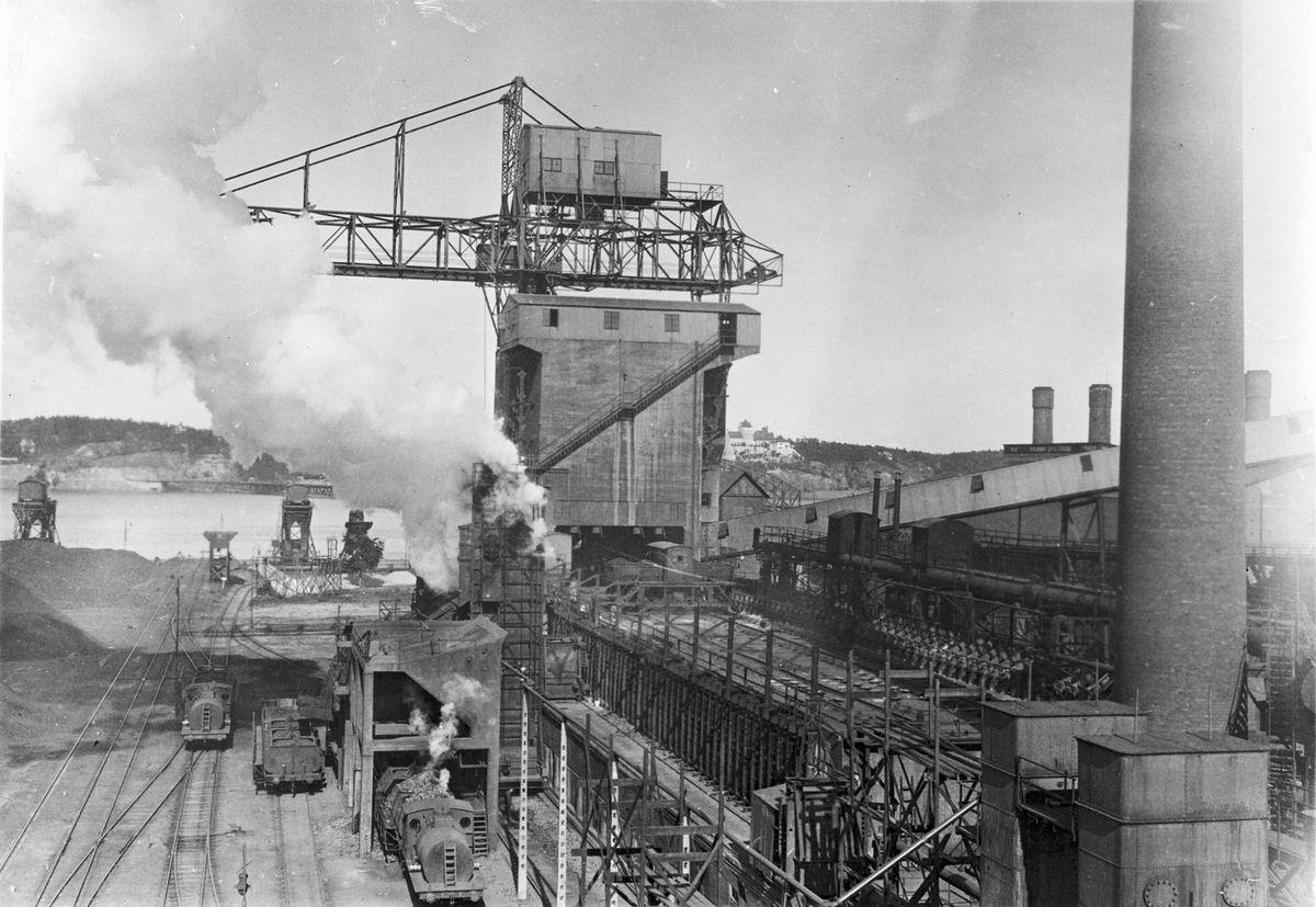 Gasverket i Värtan, Stockholm, år 1926. Totalbild av kammarugnar.