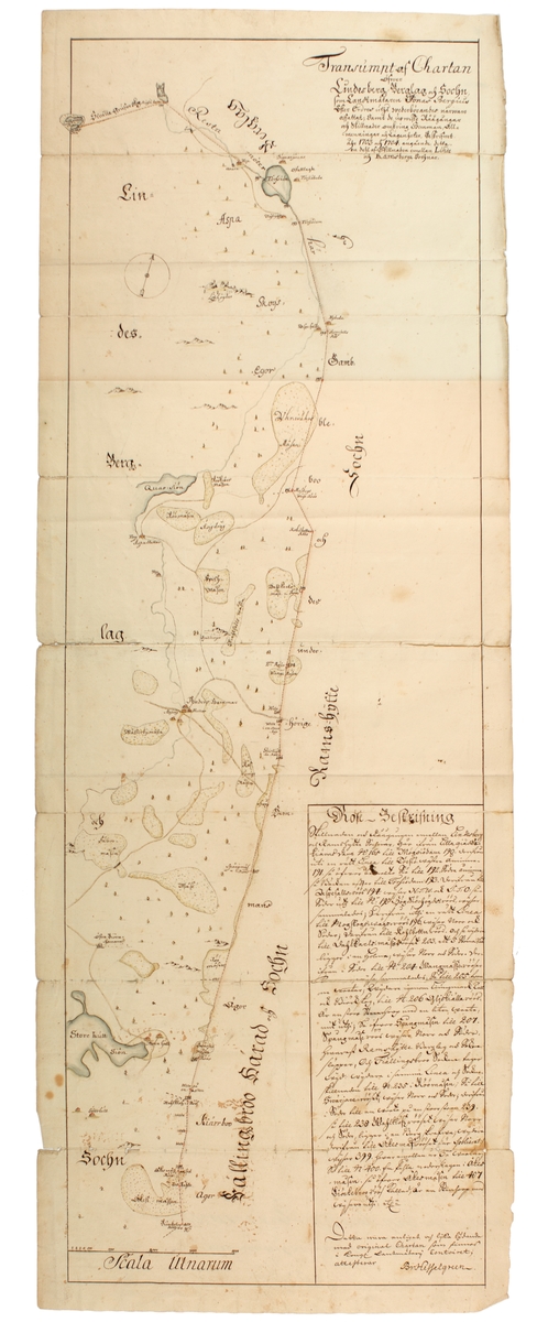 Gammelbo bruk. Gränskarta mot Lindes bergslag 1703-1704.