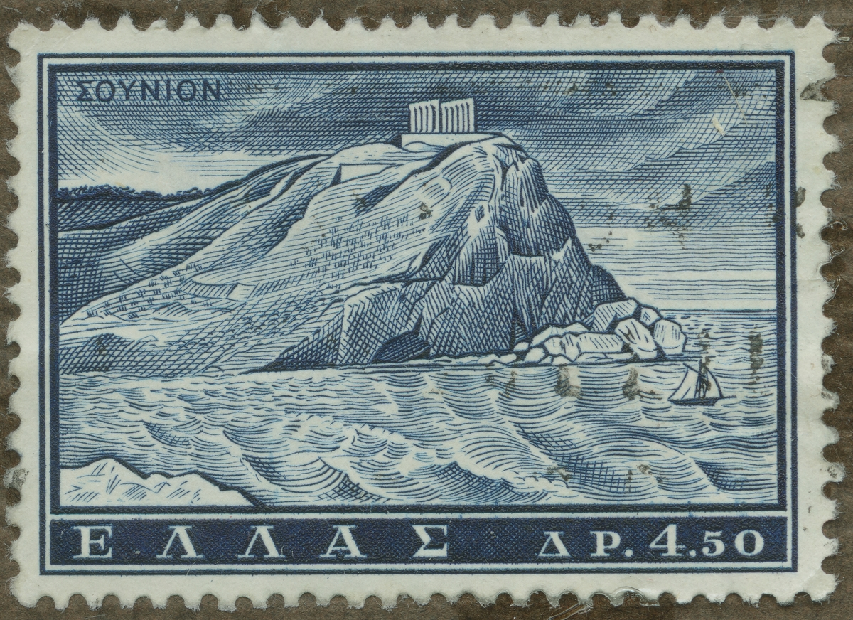 Frimärke från Grekland, 1961. Motiv av Poseidontemplet på Sounion. "Turist-serie".