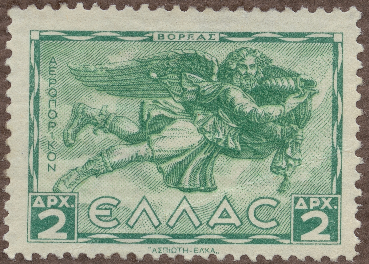 Frimärke från Grekland, 1942. Motiv av Boreas: Nordanvinden - Symbol för flygpost-