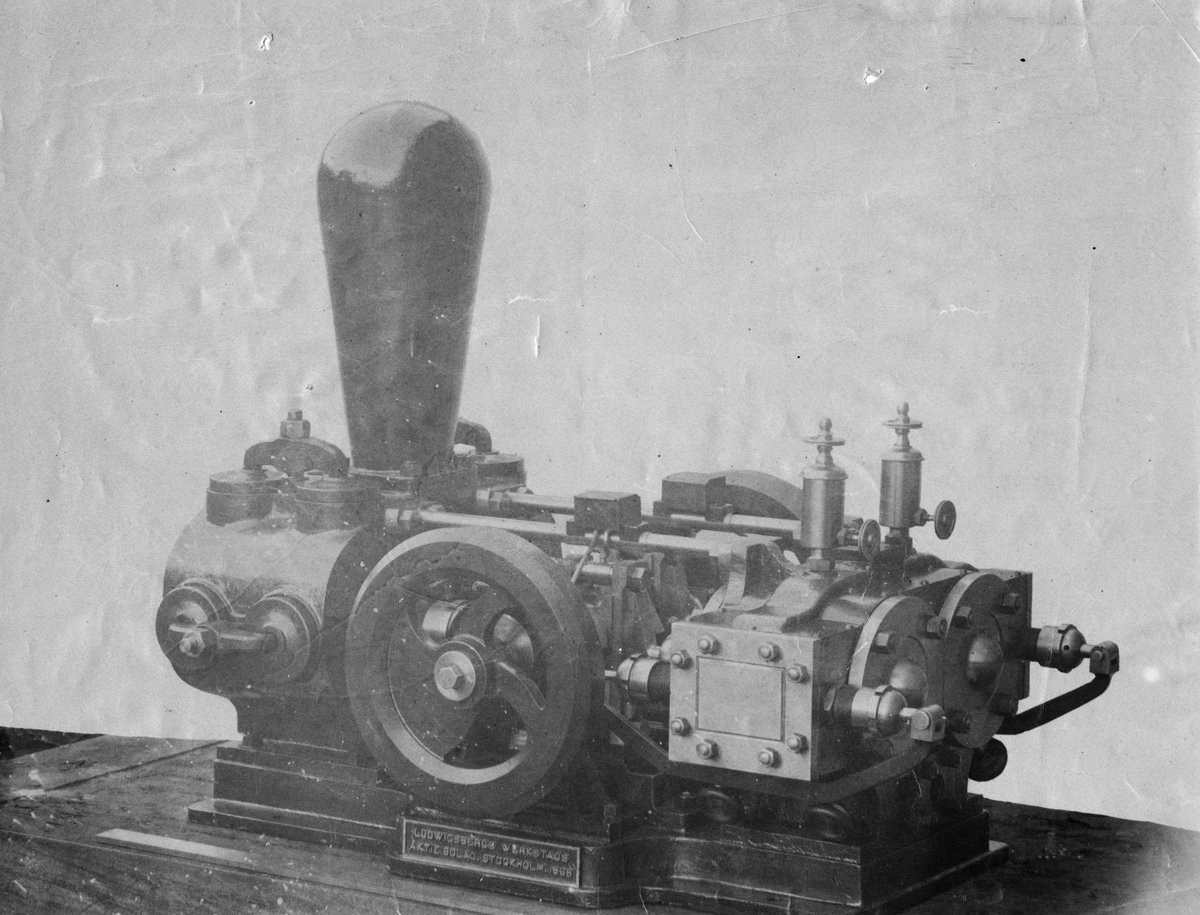 Stationär ångpump. Tillverkad av Ludvigsbergs Mekaniska Verkstad.