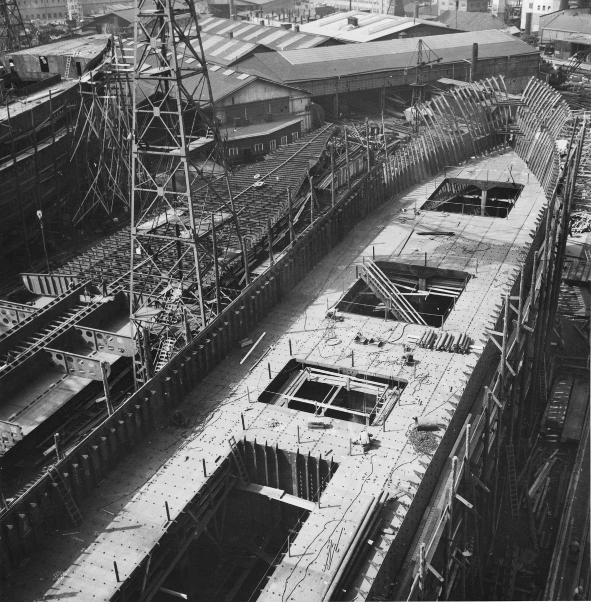 En 9000-tonnare på bädden vid Götaverken, Göteborg, 1941.