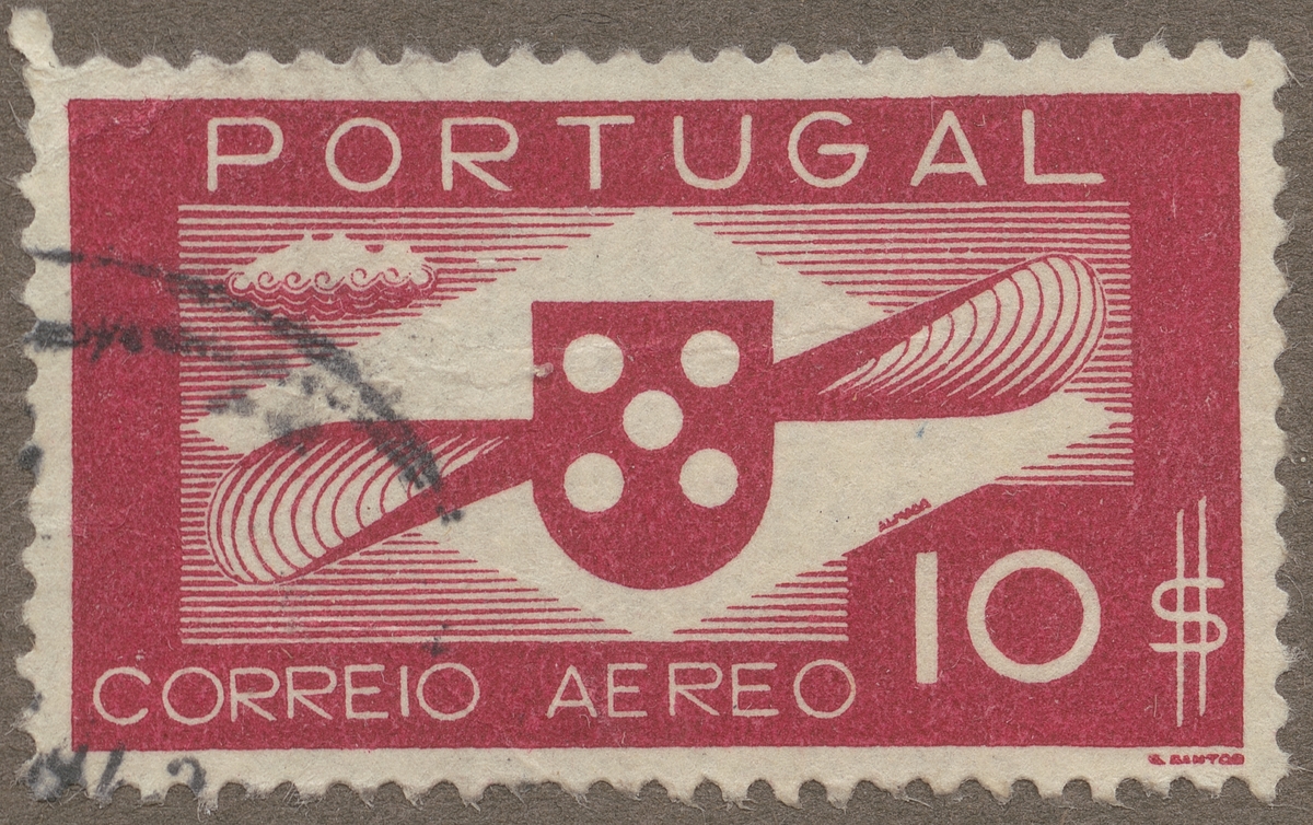 Frimärke från Portugal, 1937. Motiv av Flygplanspropeller.