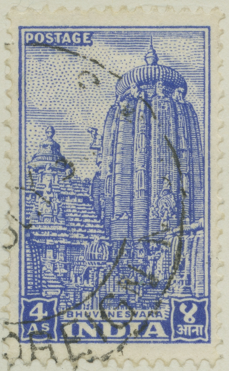Frimärke från Indien, 1949. Motiv av templet Bhuvanesvara.