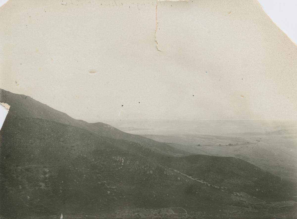 Fotografi från expedition till Peru 1920. Vy över vidsträckt bergslandskap.