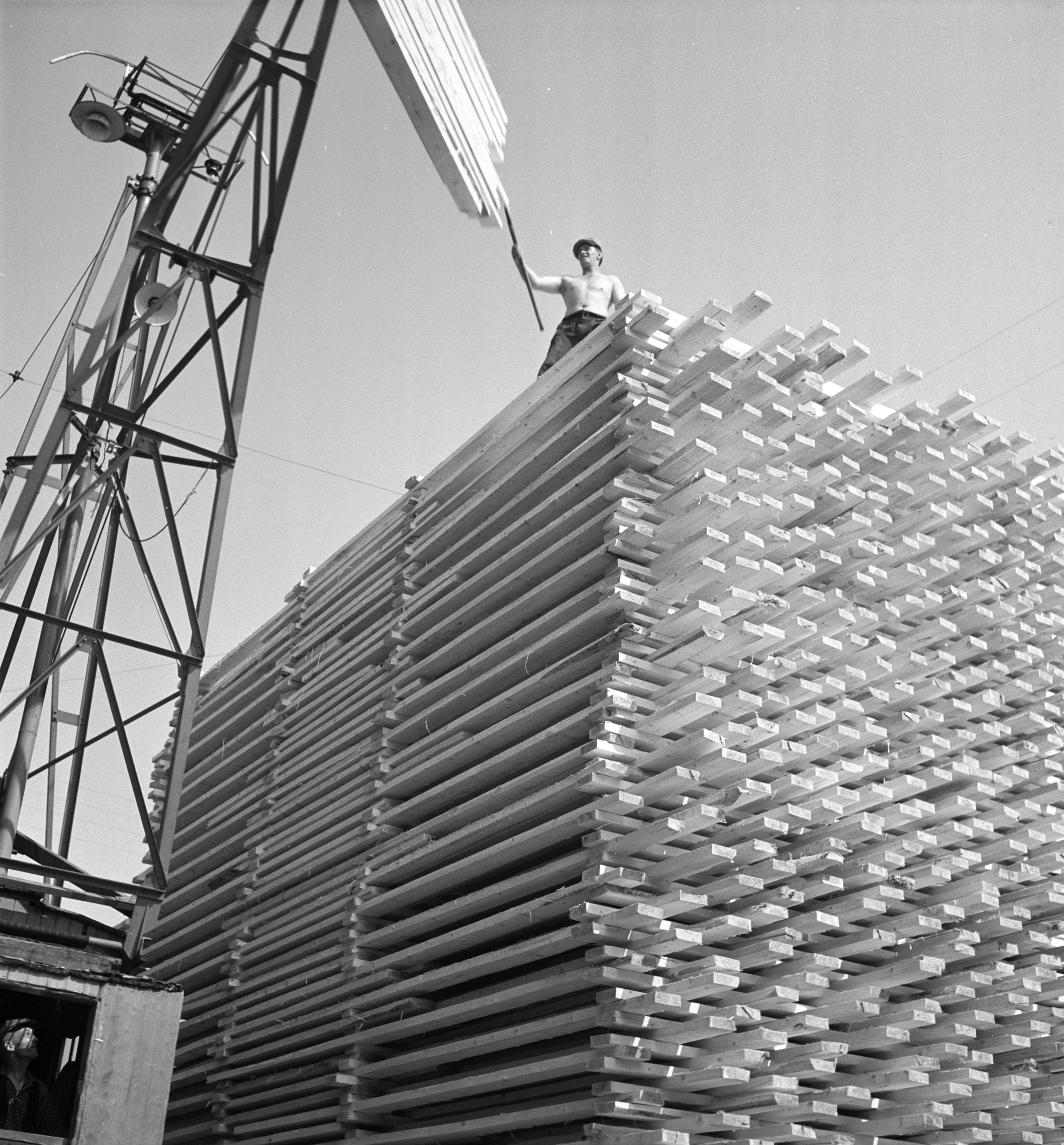 Skönviks sågverk. Lastning av brädor. Bild tagen på 1940-talet.