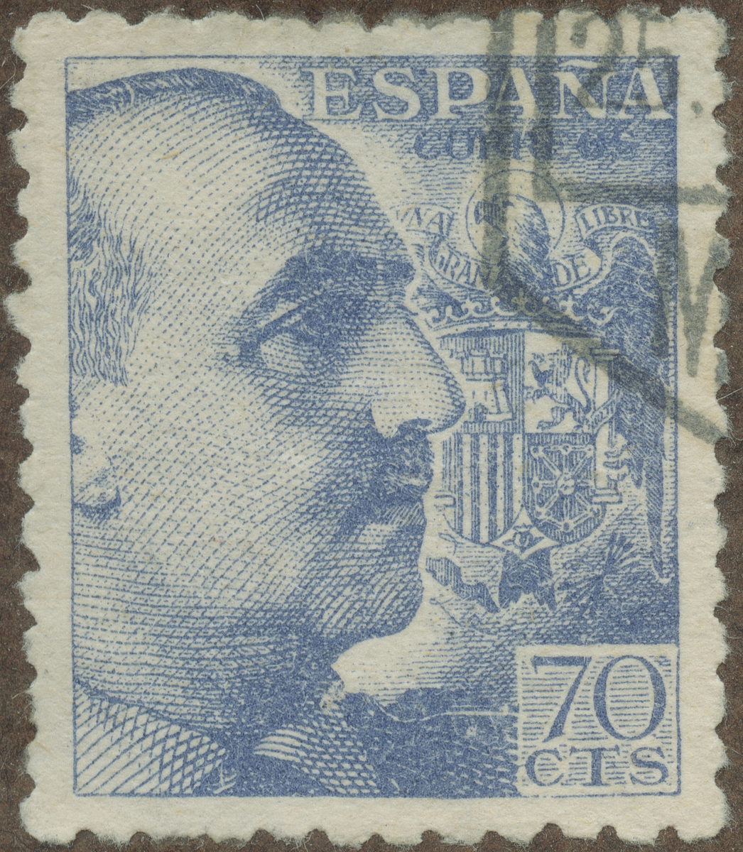 Frimärke från Spanien, 1939. Motiv av General Fransisco Franco f. 1892.- Spansk general. Diktator sedan 1939.