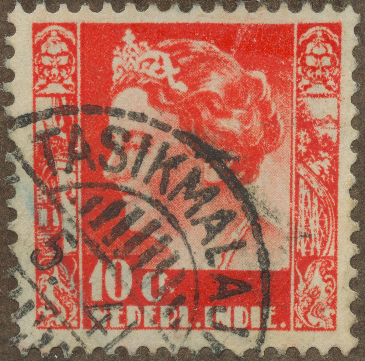 Frimärke från Nederländska Indien, 1941. Motiv av Drottning Wilhelmina Nederländerna