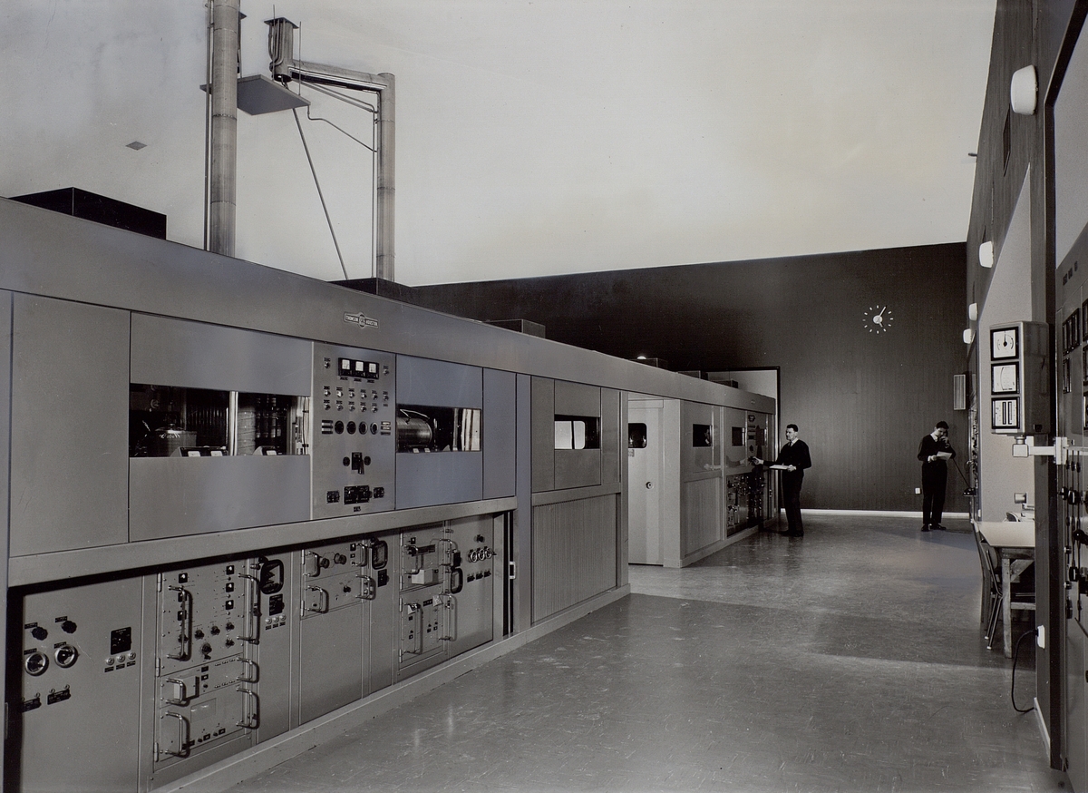 Motala. Sändarens frontsida. Två 300 kW-sändare, levererade av det franska bolaget Thomson Houston, Paris.