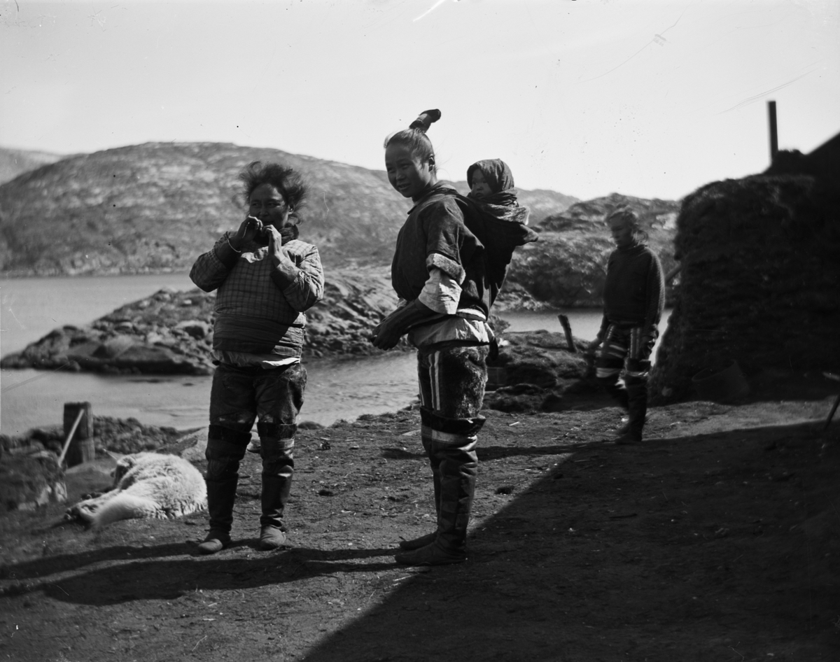 Fotografi från Grönland. Motiv av två kvinnor och ett barn.