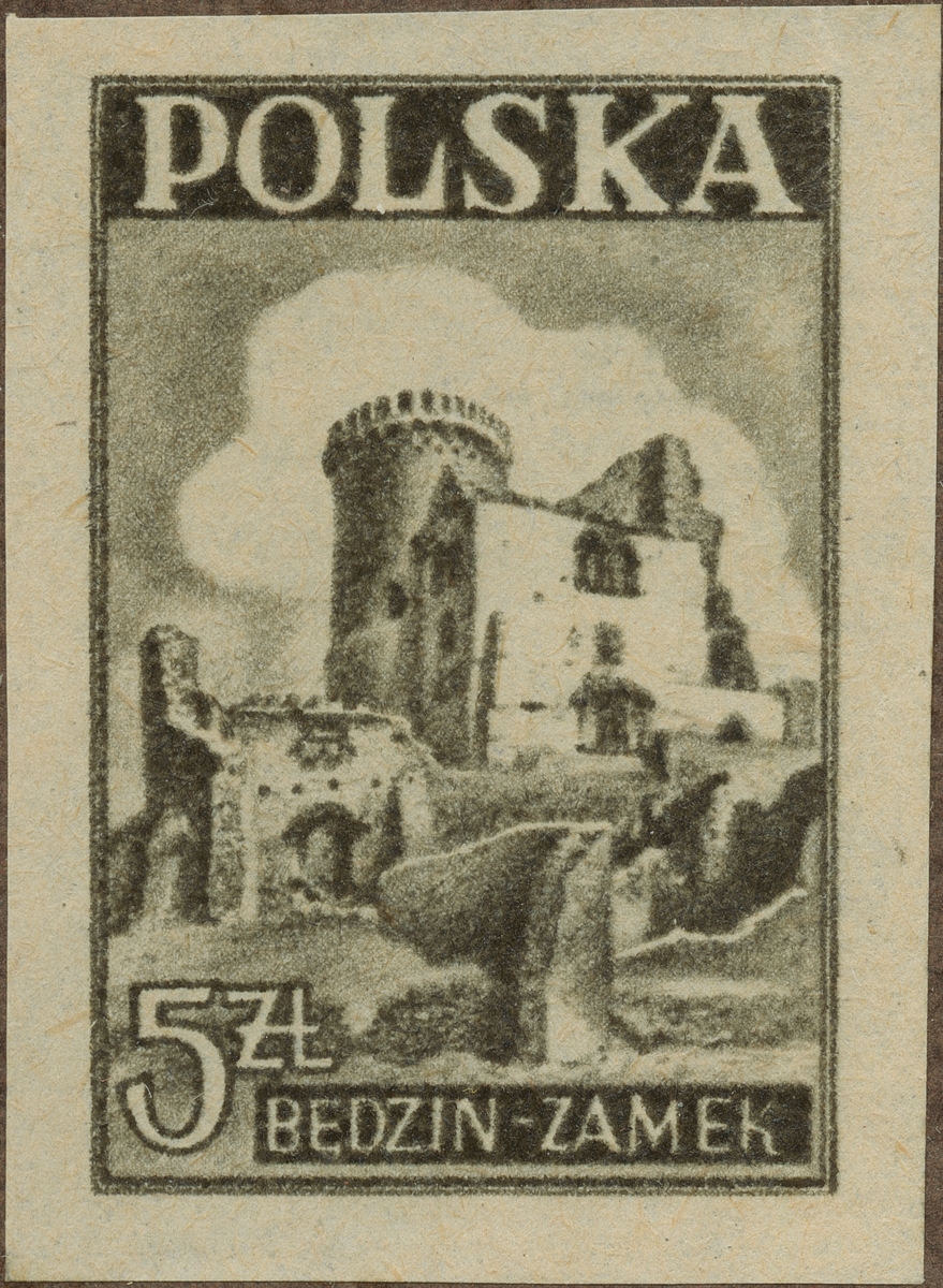 Frimärke från Polen, 1946. Motiv av Slottet Bedzin- Zamek i Polen