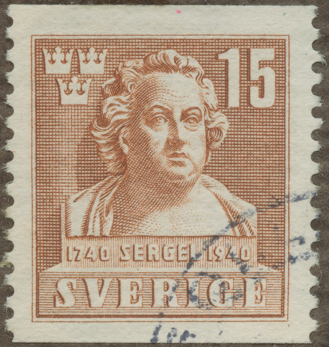 Frimärke från Sverige, 1940. Motiv av Johan Tobias Sergel 1740-1814 Svensk skulptör -200-årsminne av hans födelse: 1740-1940-