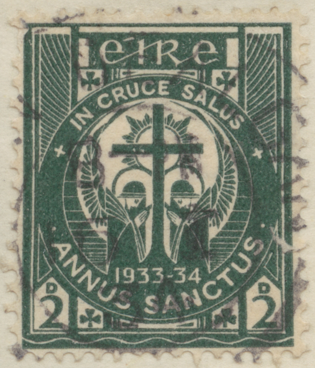 Frimärke från Irland, 1933. Motiv av Kors med änglar Det Heliga Året 1933-1934