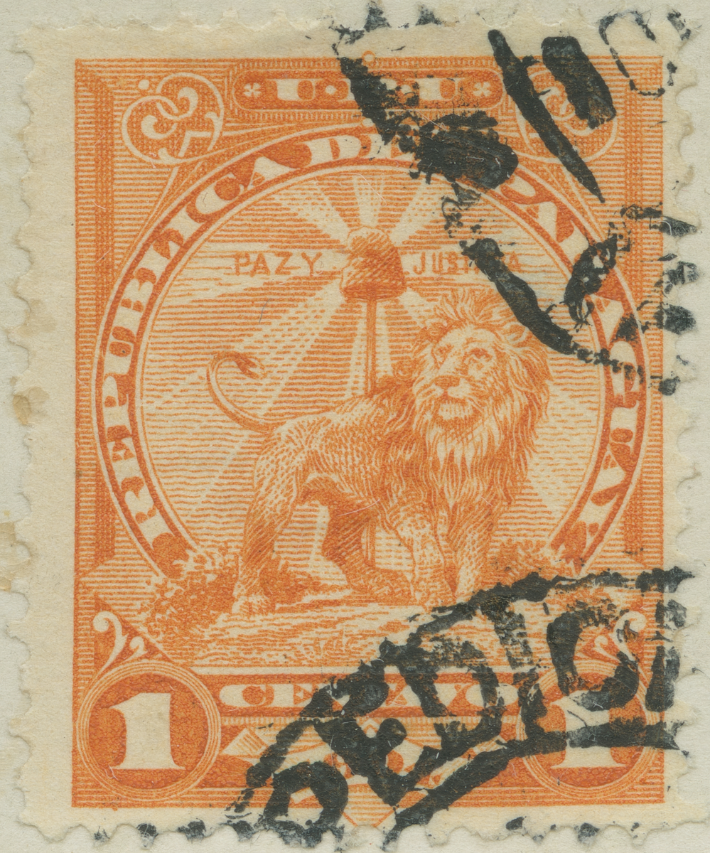 Frimärke från Paraguay, 1904. Motiv av Paraguays Vapen -Lejon-