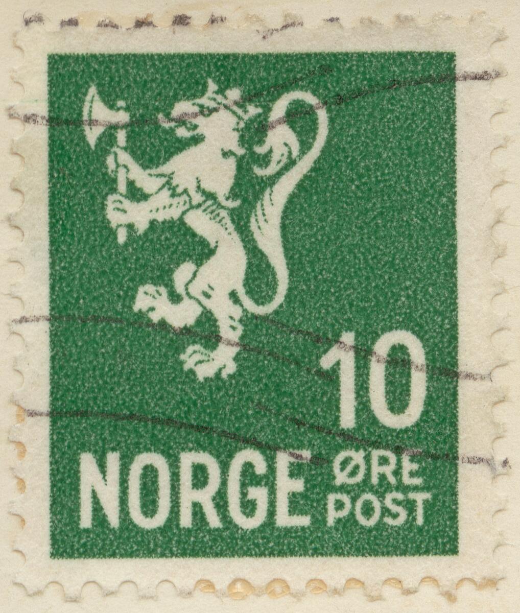Frimärke från Norge, 1922. Motiv av -Lejon med stridsyxa-