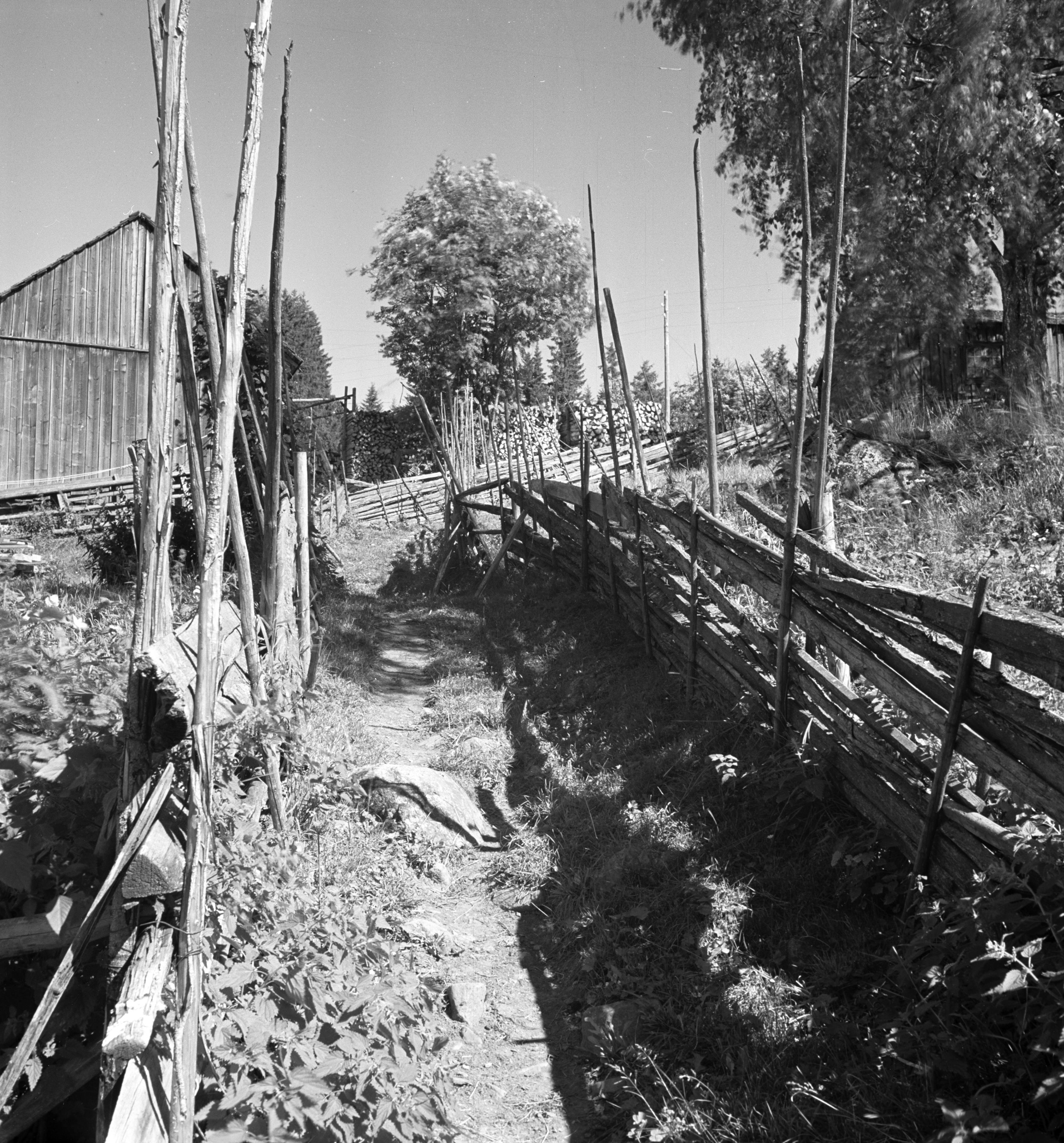 Gård mellan Hallsta och Bäck. Gärdsgård. Bild tagen på 1940-talet.
