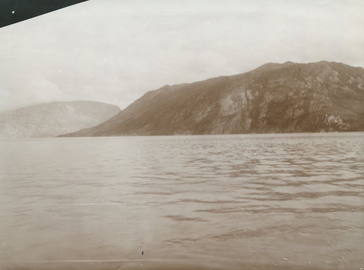 Fotografi från expedition till Grönland. Vy över hav och berg.