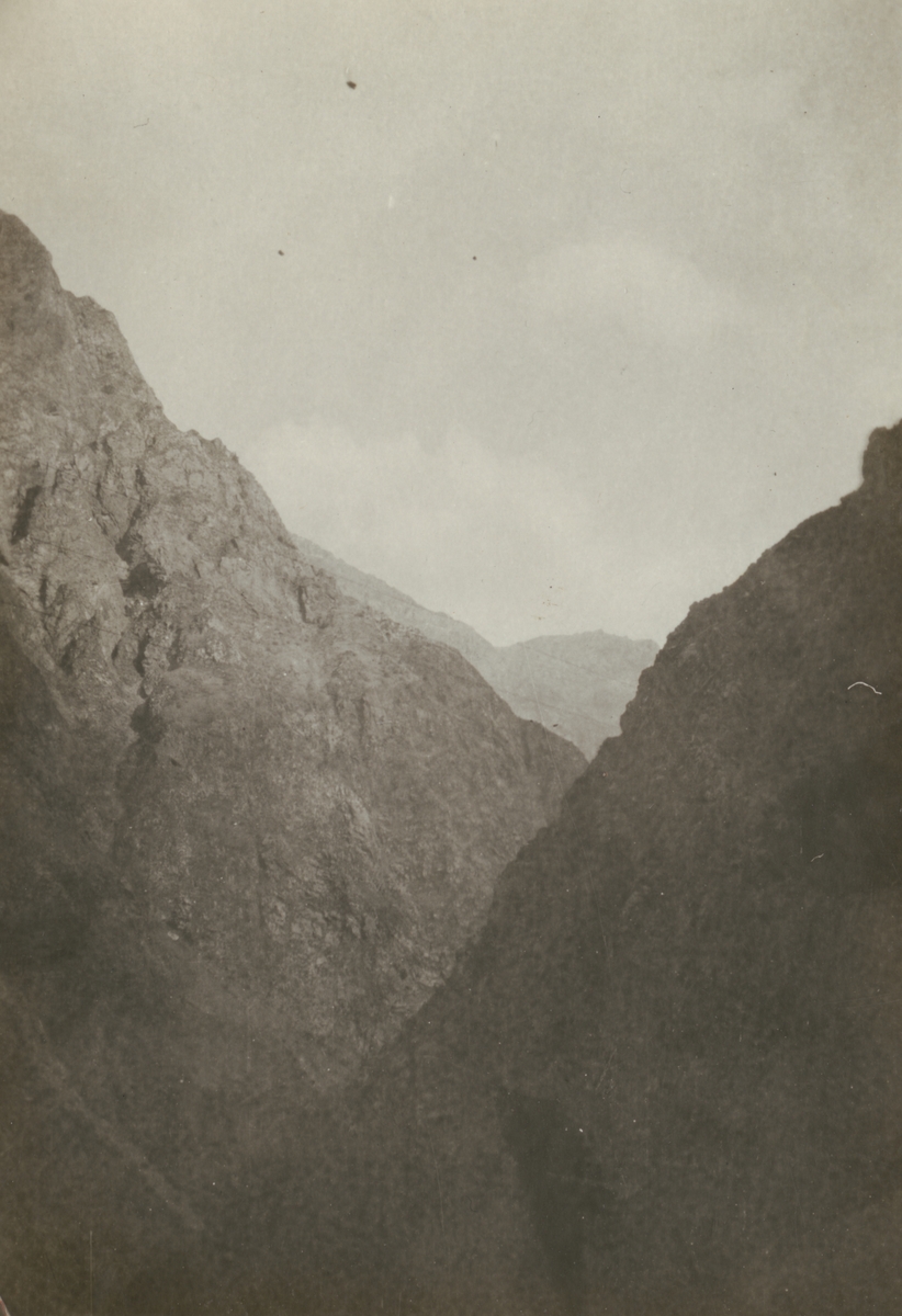 Fotografi från kuvert märkt med "Ernst Nordenskjöld". Vy över bergslandskap.