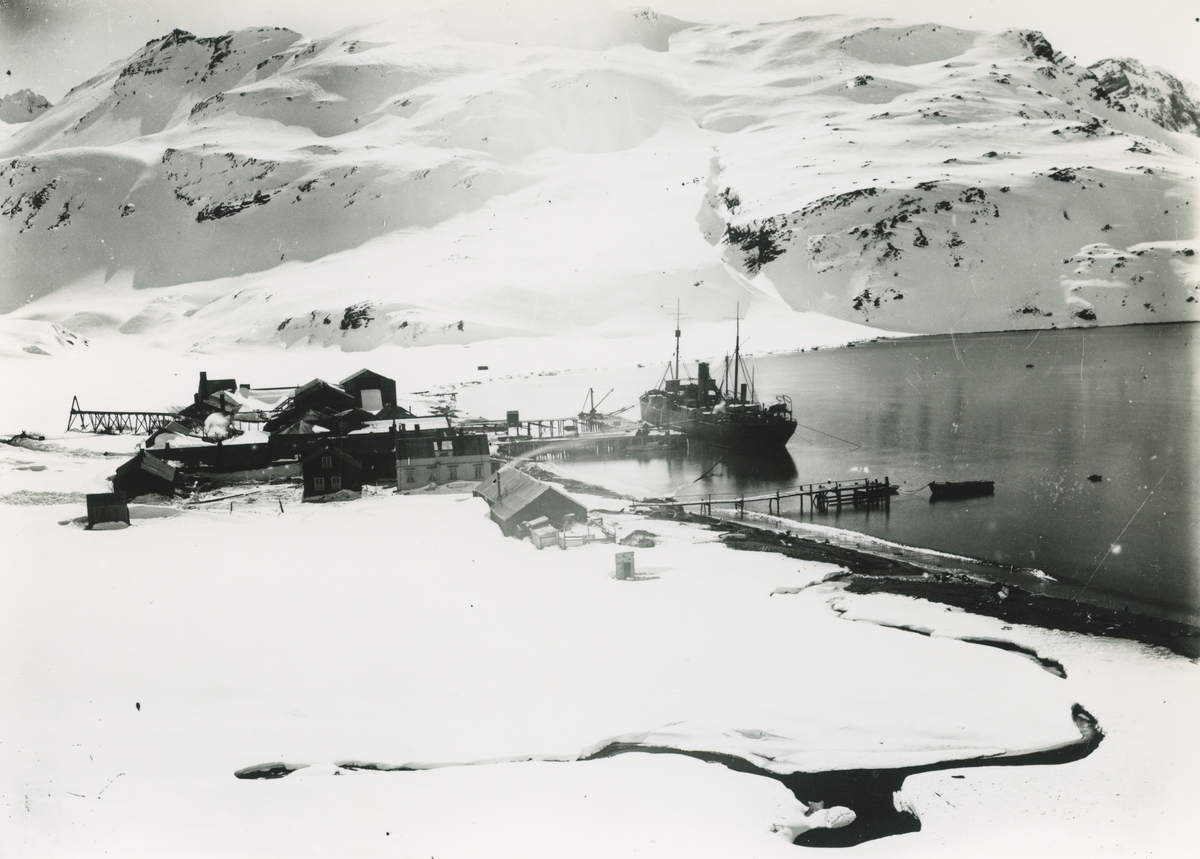 Bild från expedition i Antarktisområdet. Vy över valfångststationen Husvik i South Georgia.