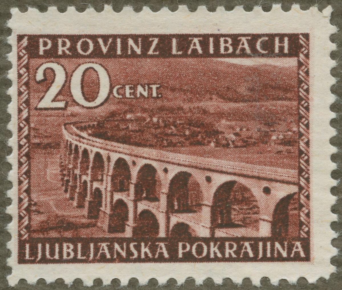 Frimärke från Kroatien, 1945. Motiv av Ståtlig bro i provinsen Laibach