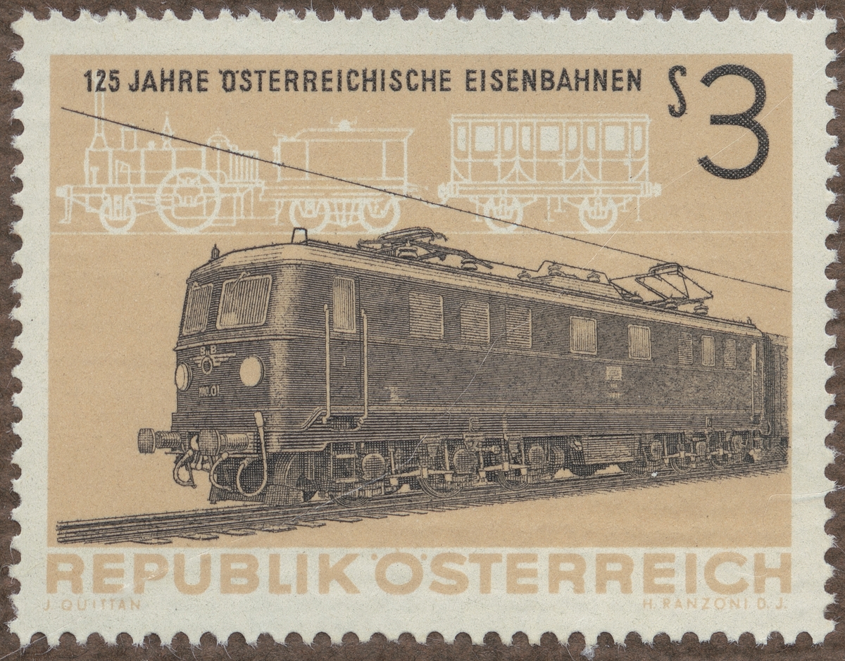 brevid "Austria", modern ellokomotiv av 1962." "- Österrrikes järnvägars 125-årsjubileum: 1837-1962-"