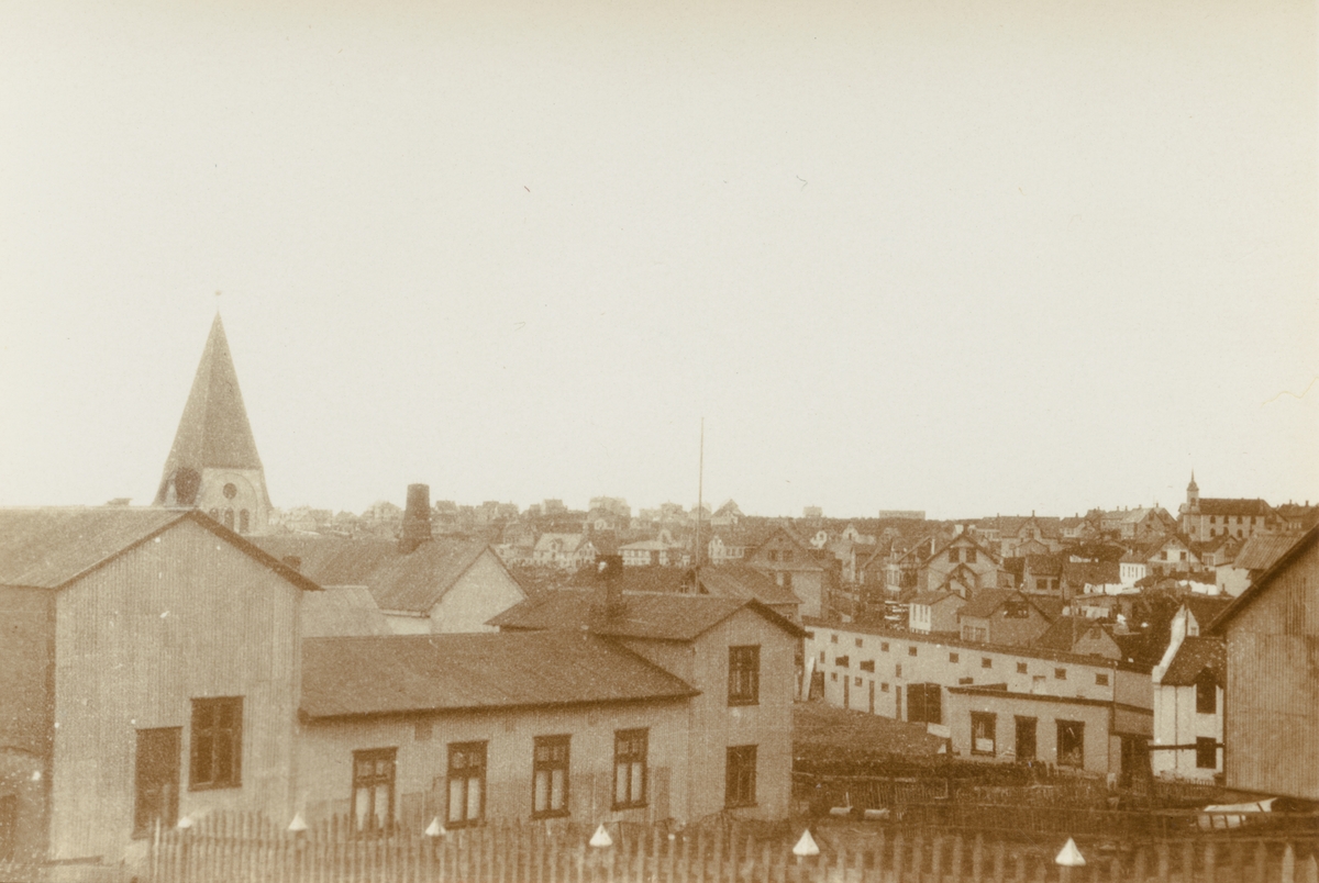 Fotografi från Albin Ahrenbergs resa till Grönland 1929. Vy över stad.