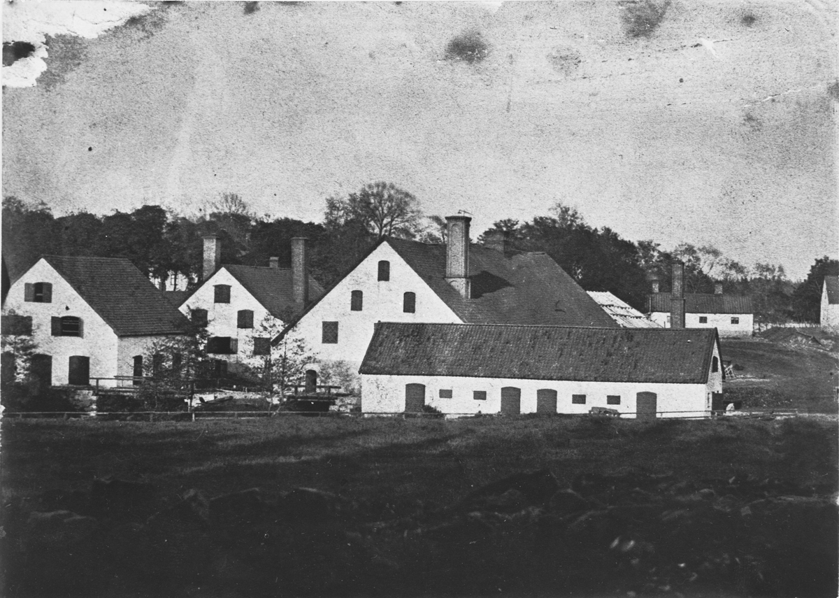 Järnbruk. I mitten vallonsmedjan, senare lancashiresmedjan. Byggnaden framför denna är "labbet. Längst bort t.v. gjuteri och mekaniska verkstad samt plåtslageriverkstad.