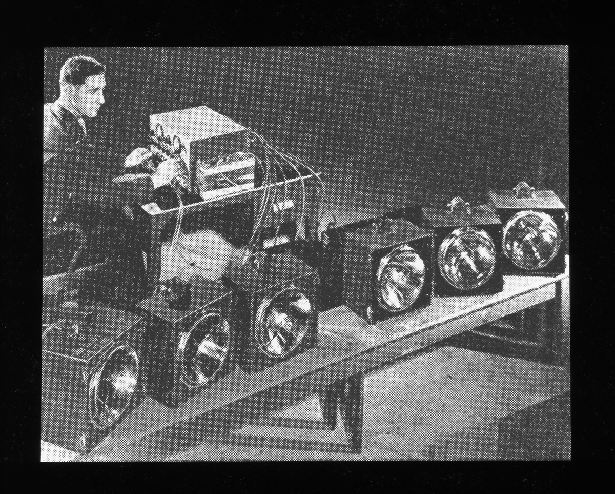Titel: Skioptikonbild från Institutionen för fotografi vid Kungliga Tekniska Högskolan. Använd av professor Helmer Bäckström som föreläsningsmaterial. Bäckström var Sveriges första professor i fotografi vid Kungliga Tekniska Högskolan i Stockholm 1948-1958. Blixtfotografering hastigt rörliga objekt och snabba förlopp.