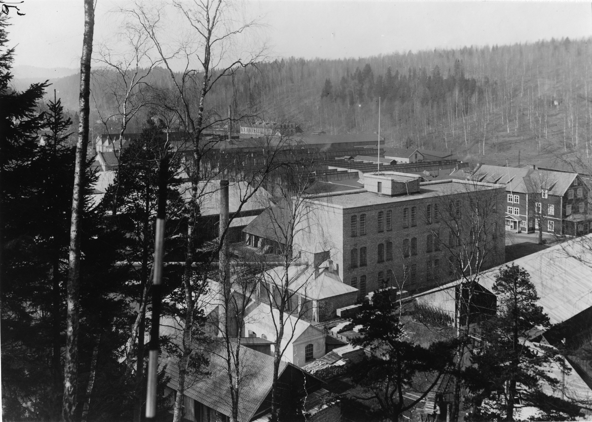 Norrahammars bruk. Vy av bruket med snickareverkstaden i förgrunden, 1925.