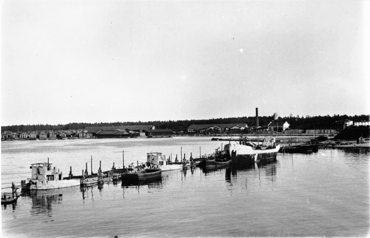 Byggherre: Byggnadsaktiebolaget Contractor, Stockholm. Betongfartyg till kaj.