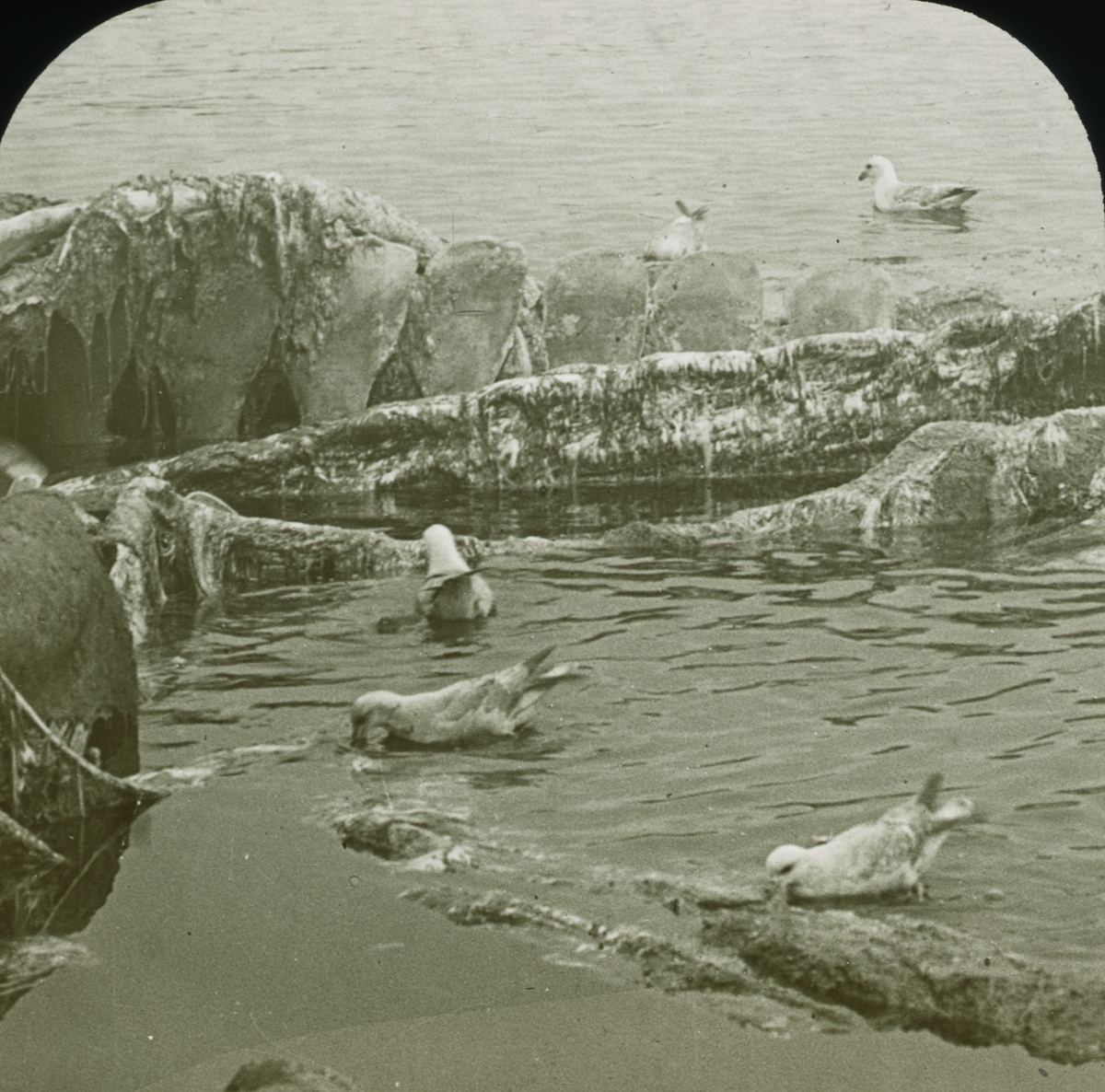 Fotografi från expedition till Spetsbergen. Motiv av fåglar vid klippa i havet.