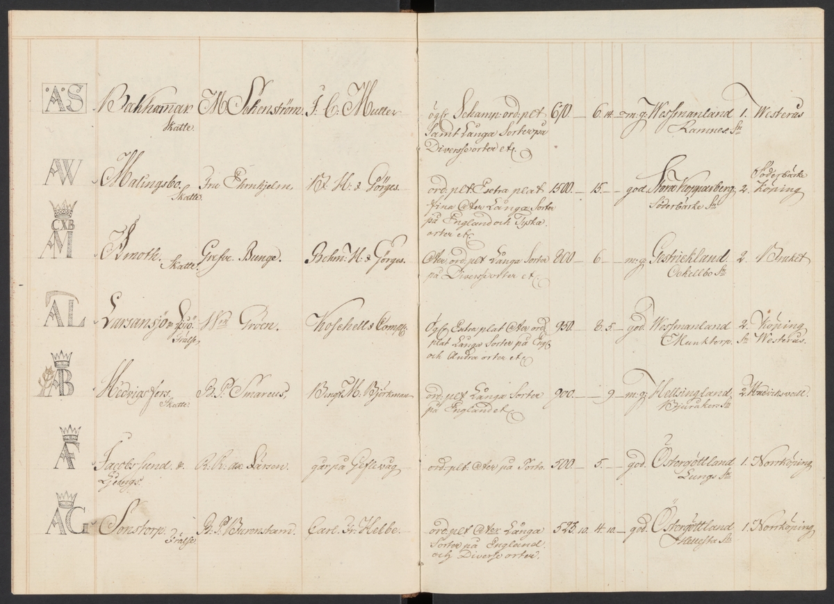 Titel: Stämpelbok vid Stockholms stora järn- och metallvåg inrättad år 1794. Handskrift. Ur Carl Sahlins bergshistoriska samling.