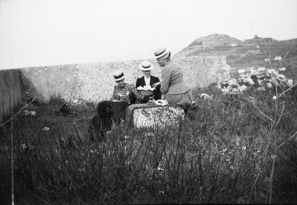 Drottning Victorias bilder. Tre kvinnor ute på picknick.
