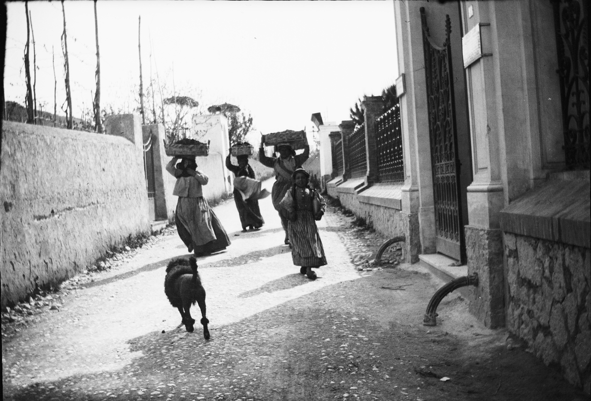 Drottning Victorias bilder. Kvinnor ute och arbetar i skördetid. Troligen Capri.