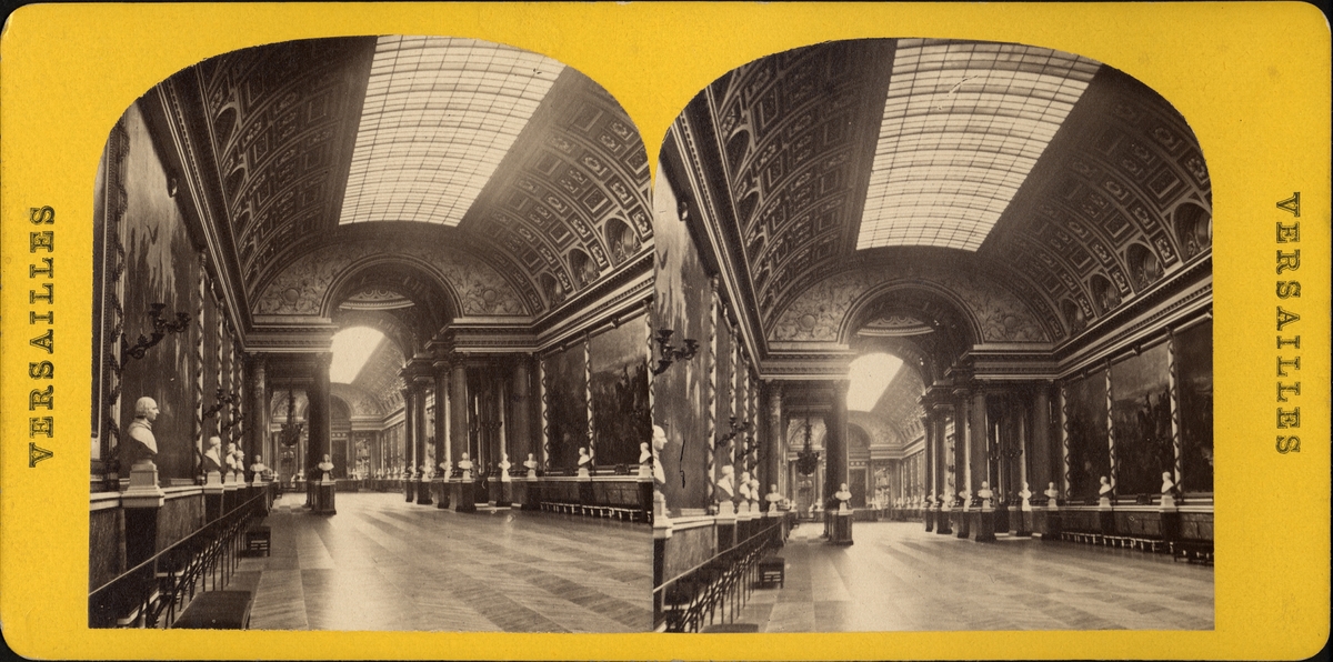 Stereobild av byster i vacker sal.