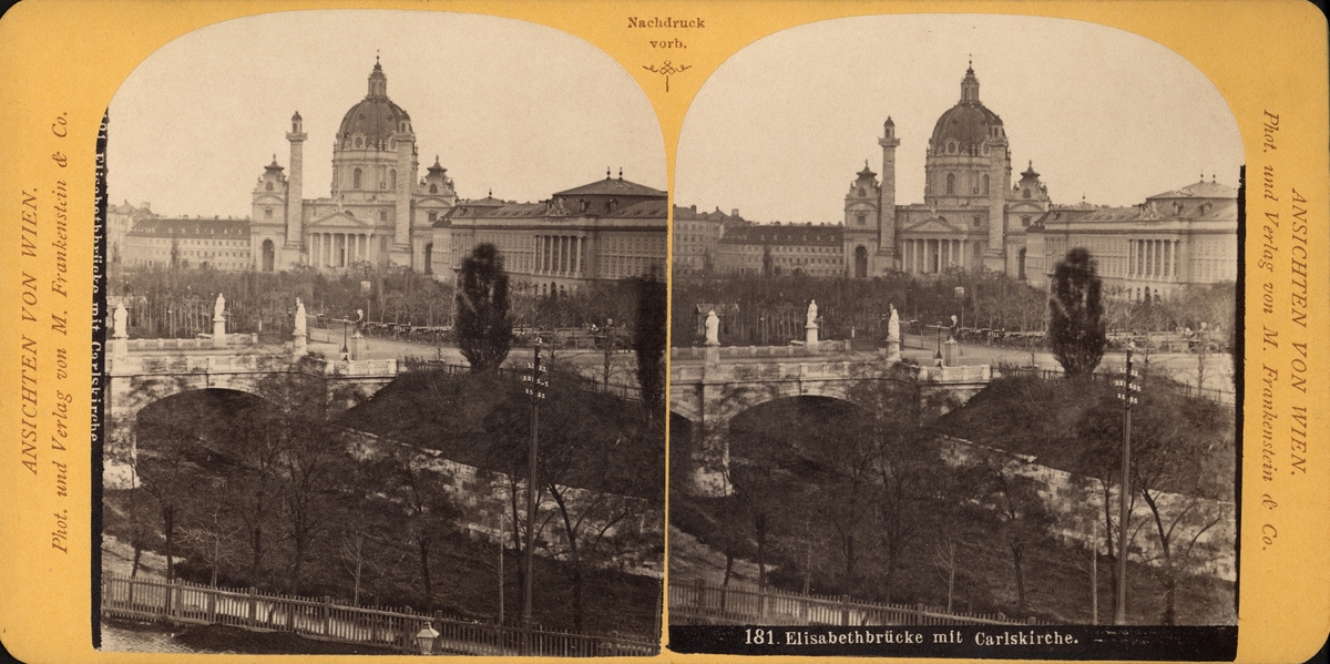 Stereobild av kyrkan/ katedralen Karlskirche, Wien.