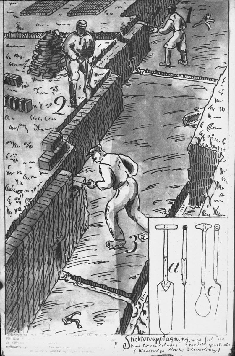 Skioptikonbild. Illustration visande sticktorvupptagning.