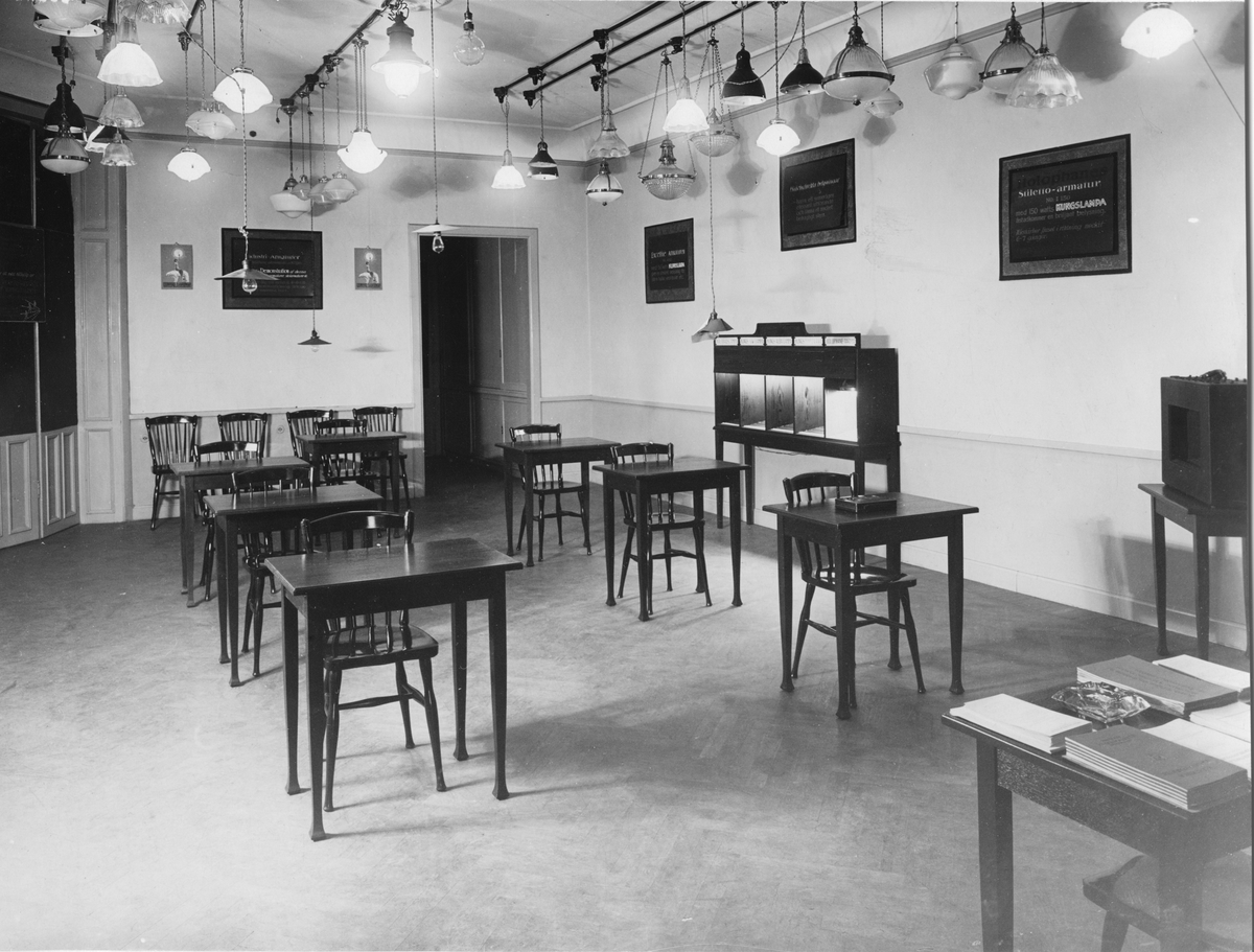 AB Stockholms Glödlampfabrik. Demonstationsrum på Birgerjarlsgatan i Stockholm 1927.