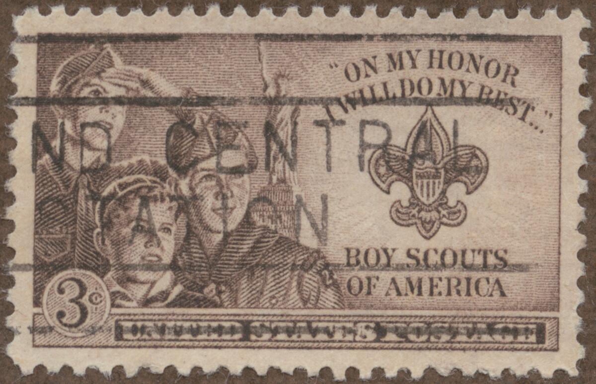 Frimärke från U.S.A., 1950. Motiv av tre unga pojkar Till minne av Amerikas Boy Scouter