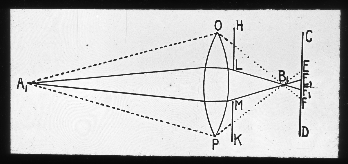 Skioptikonbild från Institutionen för fotografi vid Kungliga Tekniska Högskolan. Använd av professor Helmer Bäckström som föreläsningsmaterial. Bäckström var Sveriges första professor i fotografi vid Kungliga Tekniska Högskolan i Stockholm 1948-1958.