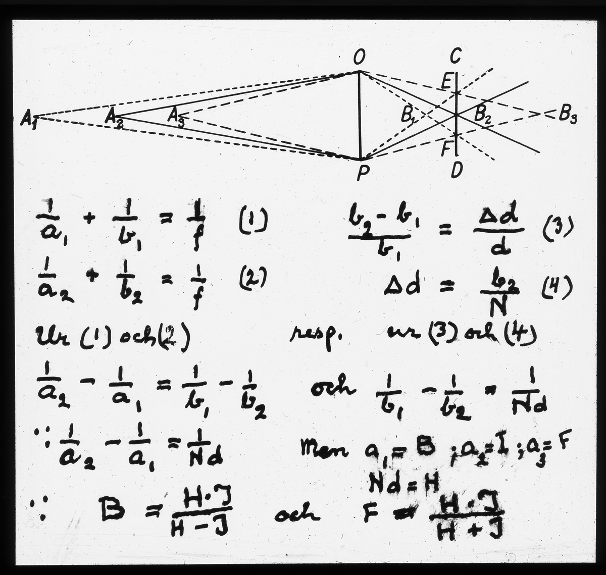 Skioptikonbild från Institutionen för fotografi vid Kungliga Tekniska Högskolan. Använd av professor Helmer Bäckström som föreläsningsmaterial. Bäckström var Sveriges första professor i fotografi vid Kungliga Tekniska Högskolan i Stockholm 1948-1958.