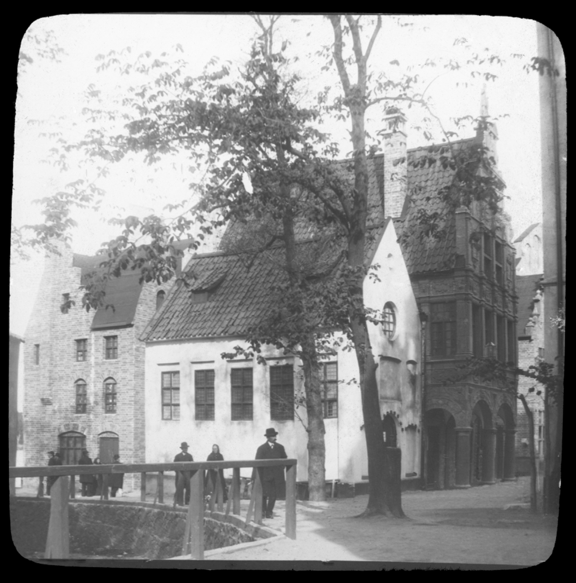 Skioptikonbild från institutionen för fotografi vid Kungliga Tekniska Högskolan. Motiv från Allmänna Konst- och Industriutställningen 1897. Gamla Stockholm.
