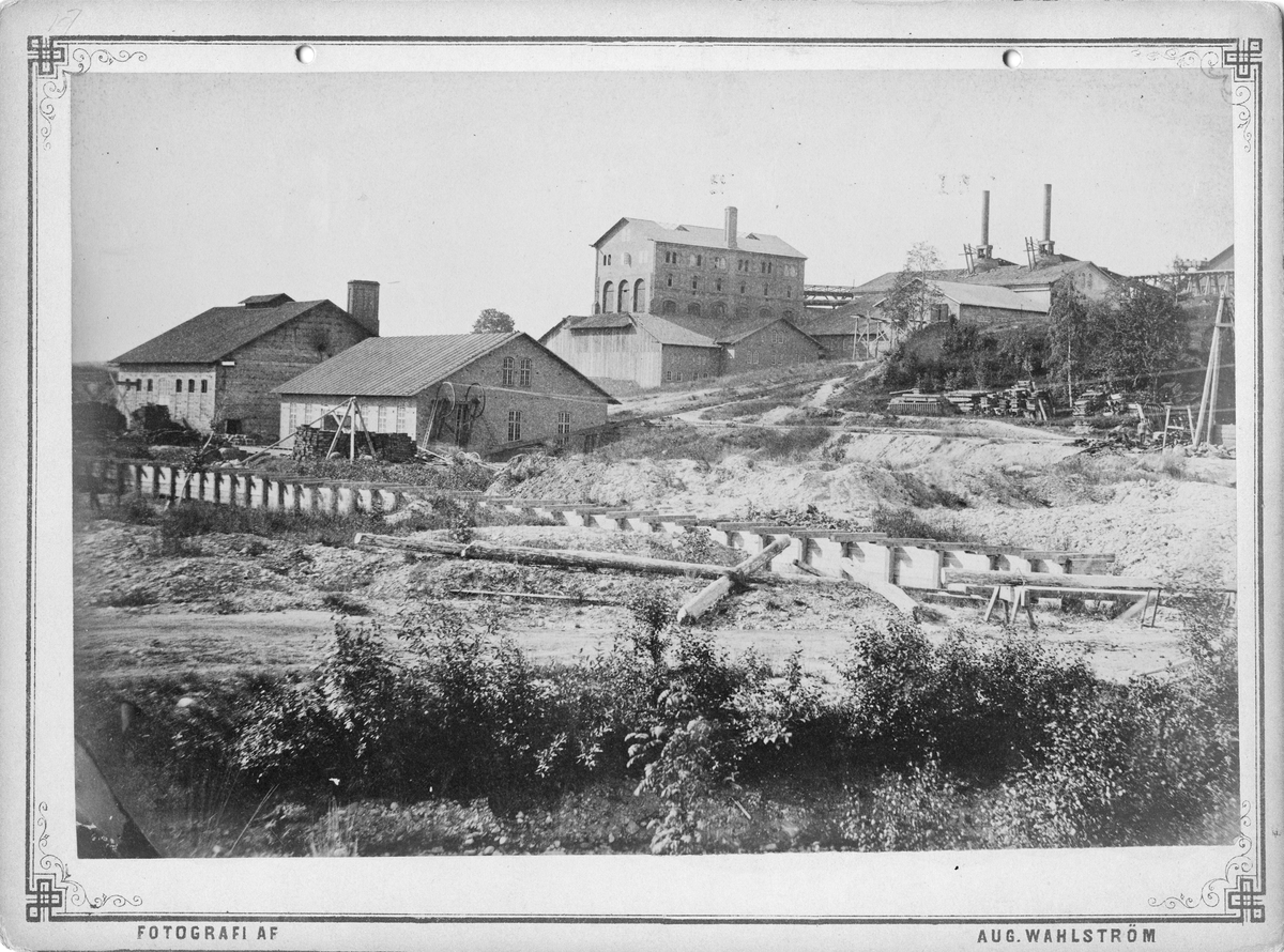 Bångbro Järnverk.Bessemerverk, blåsmaskinshus, masugnar, rostugnar och kolhus, ca 1880.