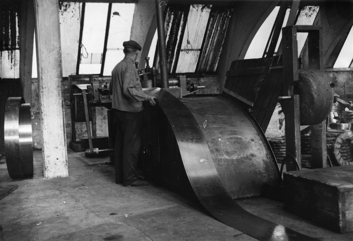 Munkfors Bruk i Värmland. Kallvalsverket, 1930. Kantpolering.