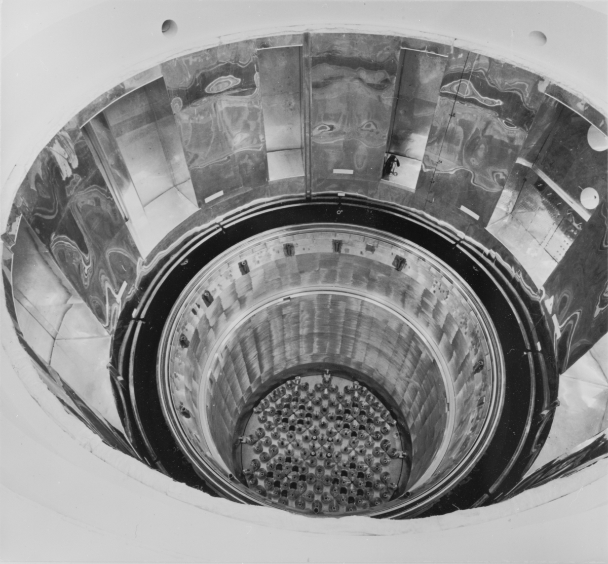 Reaktortanken och yttre termiska skyddet på sin plats i Sveriges första kärnkraftsdrivna kraftvärmeverk i Ågesta utanför Stockholm.
