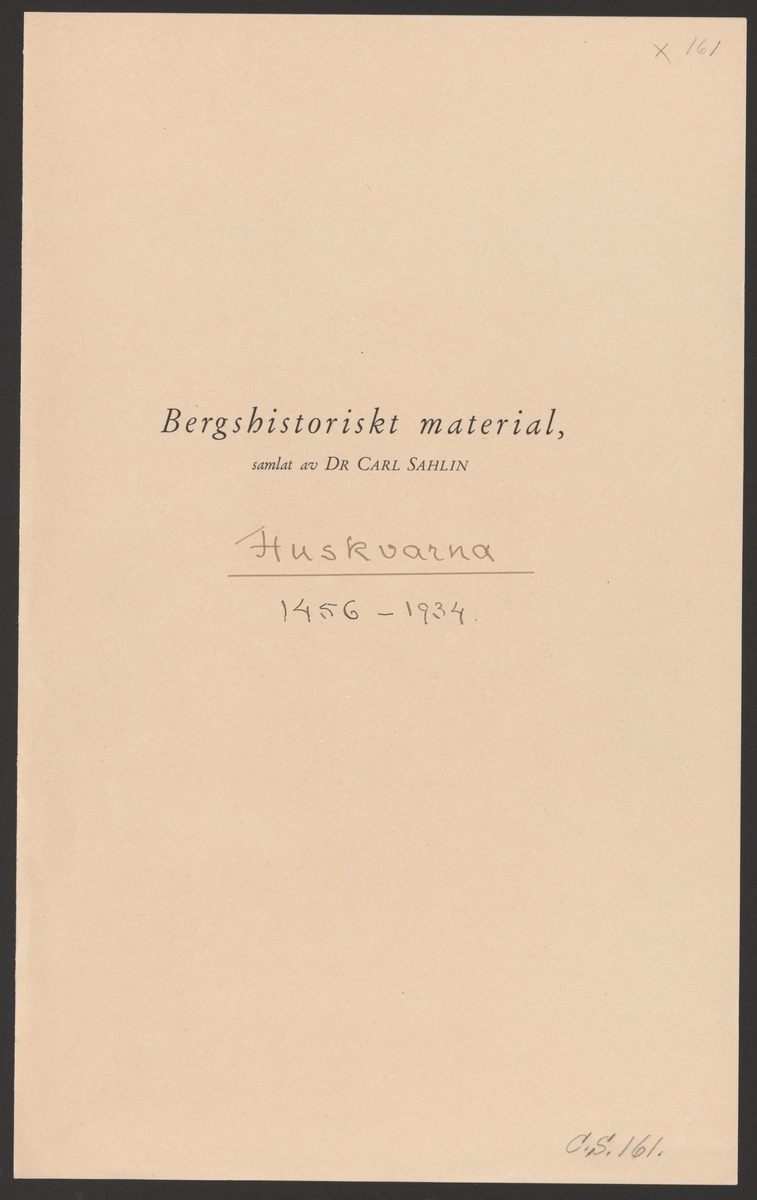 Titel: Husqvarna vapenfabriks kronologi. Ur Carl Sahlins bergshistoriska samling.