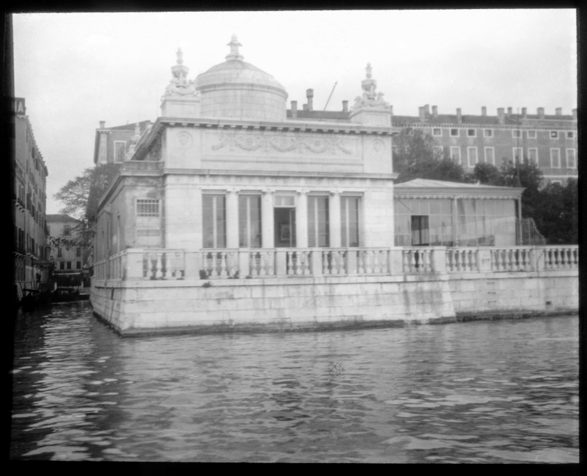Skioptikonbild från institutionen för fotografi vid Kungliga Tekniska Högskolan. Motiv föreställande en monumental byggand, sannolikt i Venedig, Italien. Bilden är troligen tagen av John Hertzberg under en resa i Europa.