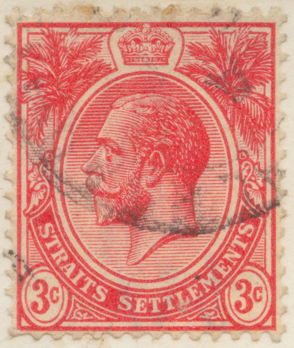 Frimärke från Straits Settlements (Malaya), 1912. Motiv av palmer och Kung George V.